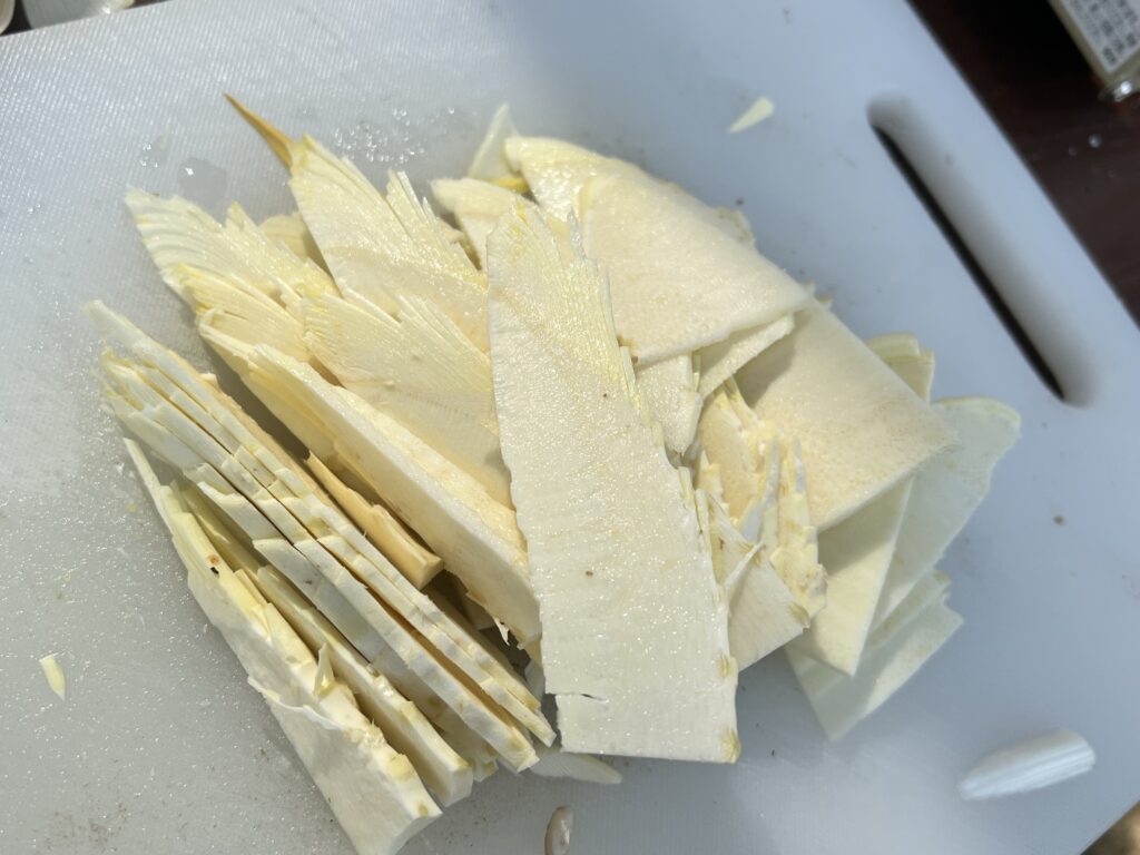 姫に皮をむいてもらったタケノコは生のまま薄〜くスライス