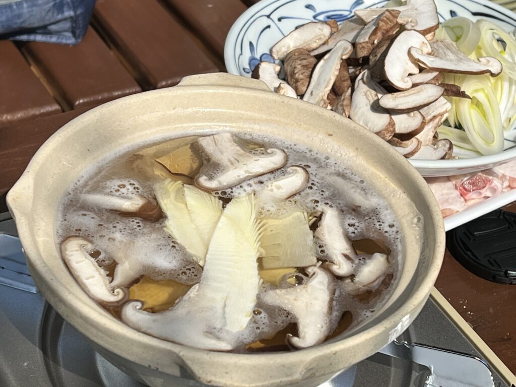 シイタケの旨味も出た出汁にサッとくぐらせ、甘くてシャキシャキの新鮮タケノコを頬張りましたよ〜