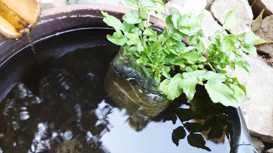水路で育ててるクレソンを収穫してラーメンにトッピング♪